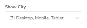 Show City - Here you will be able to choose which devices you will like the City value to be displayed. The options are: Desktop, Mobile and Tablet.