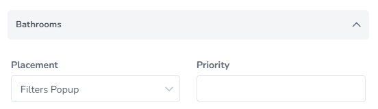 Placement: This option lets you choose the area where the bathrooms filter will be displayed. The options are Filters popup or Hidden.